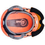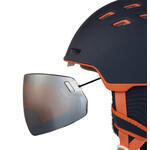 A helmet with integrated visor, which combines the advantages of wearing a goggle with those of having a visor helmet. Comfort is guaranteed, not only for wearers of prescription glasses. In addition, this helmet provides unrestricted field of vision, at the same time offers protection against wind and water. The double-lens visor is built like a traditional goggle, the lens can be exchanged within seconds by simply using to integrated buckles. The new and patent pending Sphere Fit system assures the perfect fit of this innovative helmet and the magnetic Fidlock buckle quickly secures the helmet without any hassle. Add a modern sporty design and you have a helmet, that has it all.