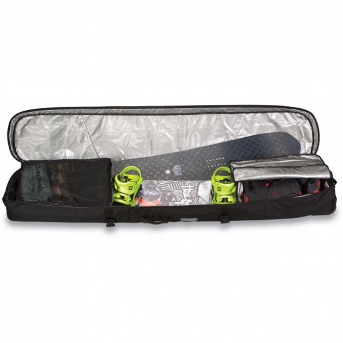 The High Roller is our most functional, versatile, feature-packed snowboard bag. It's the one you want by your side for extended trips and unpredictable conditions. Two removable interior pockets keep your boots and outerwear organized and secured till you're ready to pull the bags and take them with you. Two exterior zip pockets are great for keeping essentials close at hand, like tuning kits, extra gloves and hat, travel paperwork, or a magazine. Meanwhile, durable urethane wheels glide easily through the airport and into the parking lot, and our compatible handle system pairs with a rolling luggage bag, so you can tow both with one hand and check the latest snow report with the other.