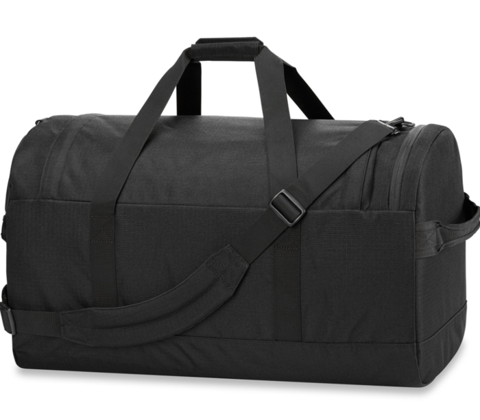 A large travel duffle with easy access to 70 liters of space Gear hauling and road tripping made easy. It's hard to beat the all-around versatility of a durable duffle bag. For extended road trips and gear-intensive weekends, the 70-liter Dakine EQ Duffle has the space you need to pack the goods. A full-length U-shaped opening makes for easy access to a generous main compartment. There's a zip end pocket to keep small items easy to find, and the whole bag stuffs into the end pocket for easy storage when empty.