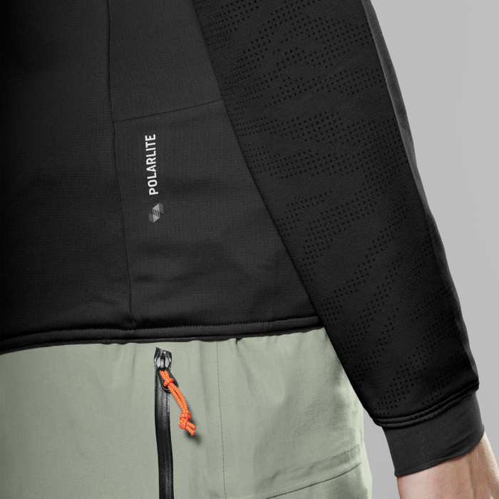 When you’re skinning uphill or working hard, you’ll appreciate the fabric’s open channels that improve breathability and absorb sweat vapour to transfer it away from the body.