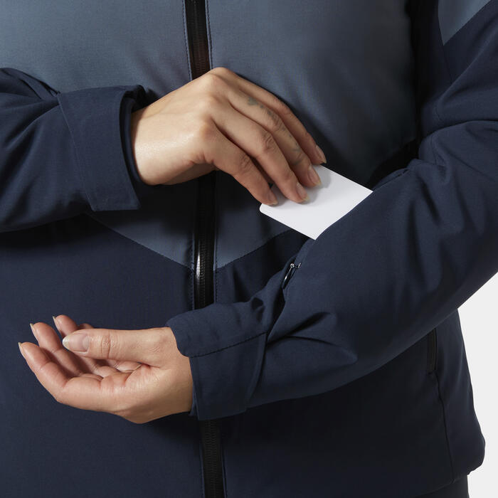 A pure performance women’s ski jacket for endless alpine thrills. This protective and comfortable performance ski jacket has a sleek, feminine fit plus all the technical ski features you need to excel run after run. HELLY TECH® PERFORMANCE 2-layer construction is waterproof/breathable and windproof. PrimaLoft® BLACK Eco insulation – made from 100% recycled content – delivers lightweight warmth. HH used a soft baffle construction on the jacket interior to increase warmth, while mesh ventilation enables you to release heat when you’re working hard. With 4-way stretch fabric, you get maximum freedom of movement. Small details with big impact include a RECCO® transponder, a ski-pass pocket, a goggle pocket, a detachable hood and wrist gaiters.