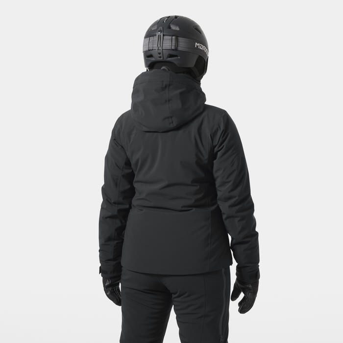 This protective and comfortable performance ski jacket has a sleek, feminine fit plus all the technical ski features you need to excel run after run. Our HELLY TECH®?PERFORMANCE 2-layer construction is waterproof/breathable and windproof. PrimaLoft® BLACK Eco insulation – made from 100% recycled content – delivers lightweight warmth. We used a soft baffle construction on the jacket interior to increase warmth, while mesh ventilation enables you to release heat when you’re working hard. With 4-way stretch fabric, you get maximum freedom of movement. Small details with big impact include a RECCO® transponder, a ski-pass pocket, a goggle pocket, a detachable hood and wrist gaiters.