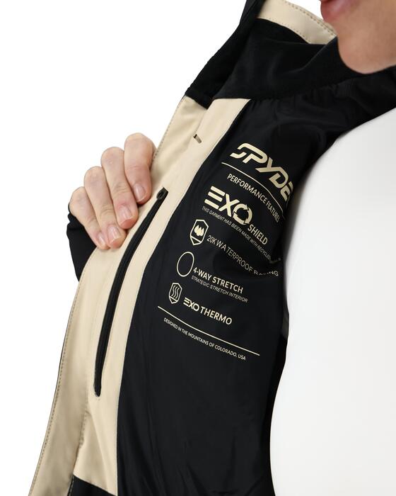 - Bronze Chassis: Taffeta lining, fixed powder skirt with snap-back feature, mesh padding at shoulders, internal zippered pocket, mesh goggle pocket, and chamois lens wipe