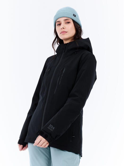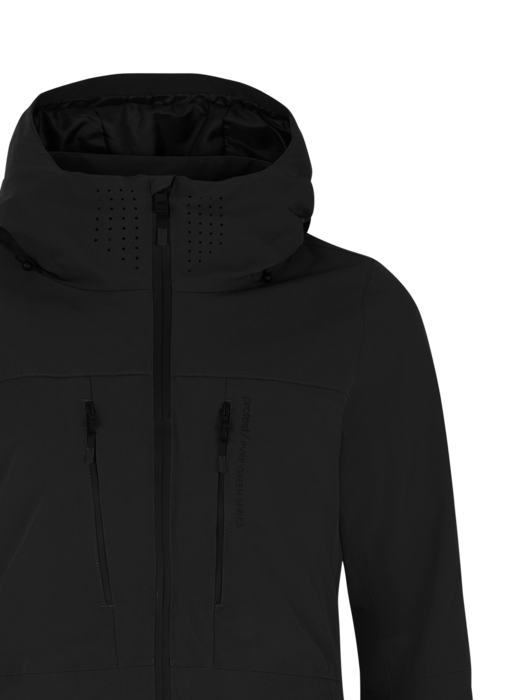 The PRTBEVERLY ski and snowboard jacket by Protest is a combination of ingenious fashion technology with a dose of Protest style. Part of our PVRE Green series, the PRTBEVERLY is also made with the environment in mind. Made of recycled materials, the PRTBEVERLY features full taping, a 20,000 mm water-repellent finish and waterproof zippers, inside placket and fixed hood: ideal for locking out the snow and slush. The PRTBEVERLY’s high 20,000 g breathability, stretch waist gaiter and ventilation zips under the armpits mean you’ll always be nice and dry. The PRTBEVELERY ski and snowboard jacket has ergonomic shaping, a slim fit, and a regular length. The PRTBEVERLY’s inner cuffs with thumb hole and half-elasticated outer cuffs with hook-and-loop fastener are practical during busy skiing days. The single-colour design with contrasting zip completes the chic look. Did we mention the very handy goggle pocket and lift pass pocket?