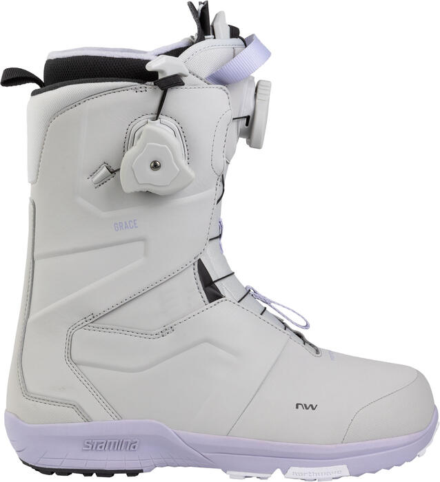 Get ready to shred with confidence in the Northwave Grace 2 Spin, a women’s snowboard boot built for all-mountain and freestyle fun. Featuring Northwave’s dual Spin closure system, you get fast, precision fit control — up to 25% quicker lockdown than traditional dial systems for a secure, performance-ready feel right out of the box. Comfort meets performance with the ergonomic Sender liner, designed for all-day support, easy adjustability, and a snug fit that keeps your heel locked in place. The Stamina outsole uses a responsive EVA RP compound for lightweight cushioning, enhanced elasticity, and reliable grip across varied terrain. With stable flex from the injected flex tongue and a design that balances playfulness with control, the Grace 2 Spin is ideal for riders who want versatile performance from park laps to groomer cruising.