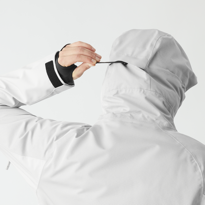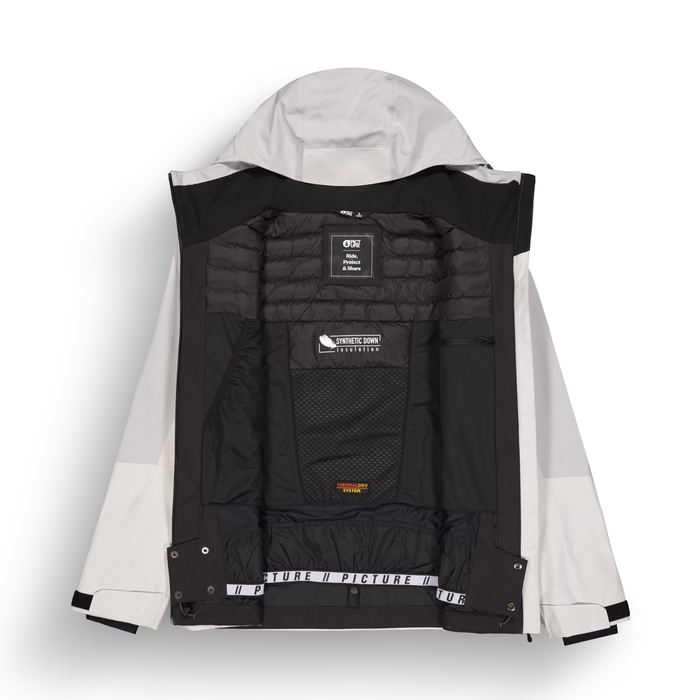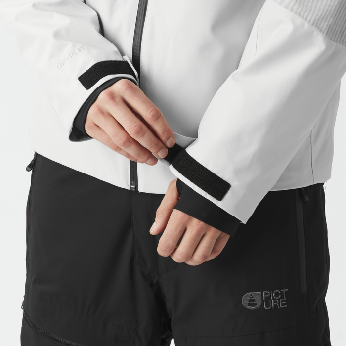The Goods two-layer jacket will follow you to ski resorts around the world. This ski jacket, with its textured fabric and vibrant colors, is a true timeless piece. Eco-designed with circular polyester sourced from textile waste, it features a 20K/20K membrane for unparalleled breathability and waterproofing, reinforced by a PFC-free durable water repellent treatment and waterproof zippers. Designed primarily for versatility, we have included essential technical features, starting with reinforced high-friction areas for durability. This jacket also has zippered vents for easy temperature control during the most intense moments, while the quilted synthetic down lining provides extra warmth. Finally, for improved protection and fit, the hood and cuffs are adjustable. This insulated jacket is equipped with everything you need for an exceptional day on the mountain, even on the coldest days on the slopes.
