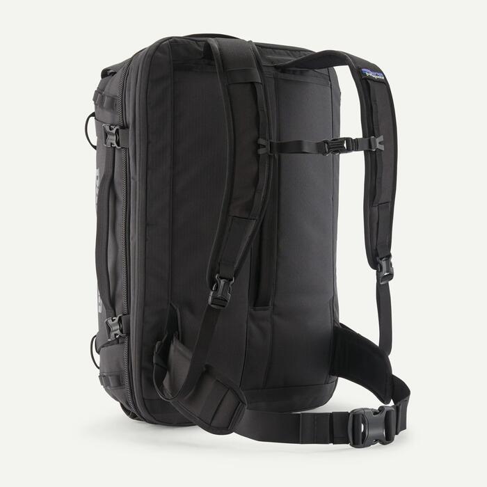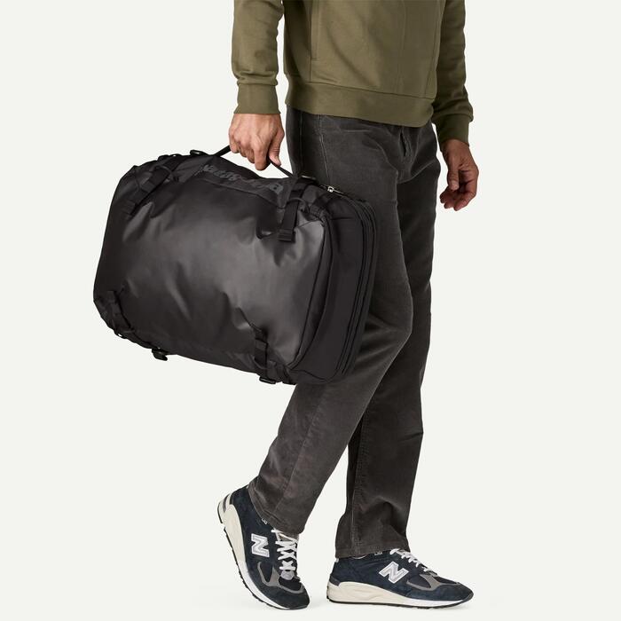 Patagonia's classic Black Hole® MLC® bag is a burly, soft-sided 45-liter suitcase with enough room for world travel and convertible backpack straps for comfy load carrying; made with 100% recycled body fabric, lining and webbing, plus a 100% recycled TPU-film laminate. Meets most carry-on requirements. Made in a Fair Trade Certified™ factory.