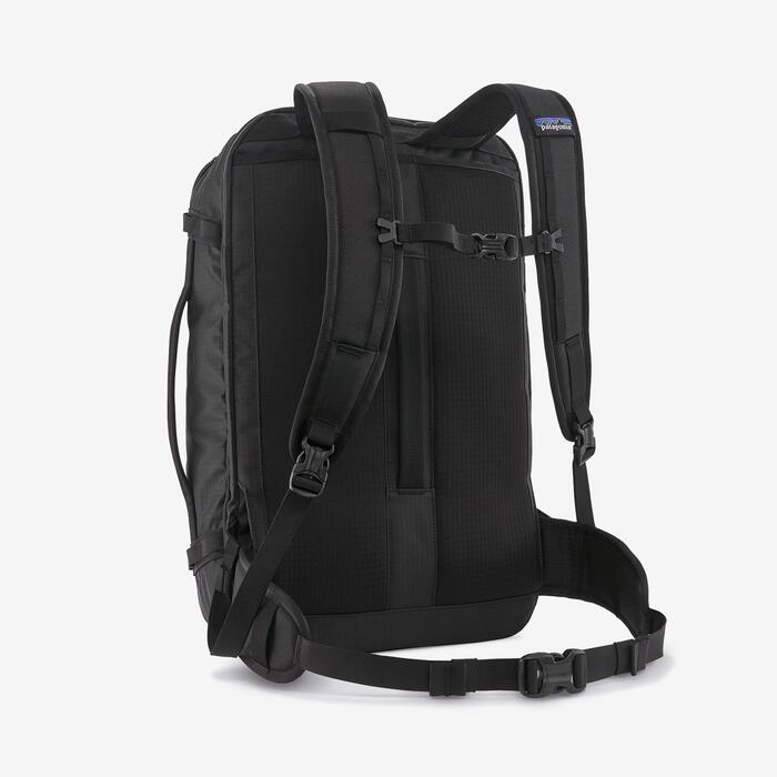 A smaller version of Patagonia's iconic 45-litre Black Hole® MLC®, the 30-litre Mini MLC is also built with recycled materials and a recycled TPU laminate. This travel-savvy, soft-sided backpack has tuck-away shoulder straps, plus a quick-stash padded hip belt that doubles as a shoulder strap. For use as a duffel bag or briefcase, tuck away all the straps and carry with one of the grab handles. The Mini MLC has plenty of room to keep you moving, but the bag also meets strict carry-on requirements. Made in a Fair Trade Certified™ factory.
