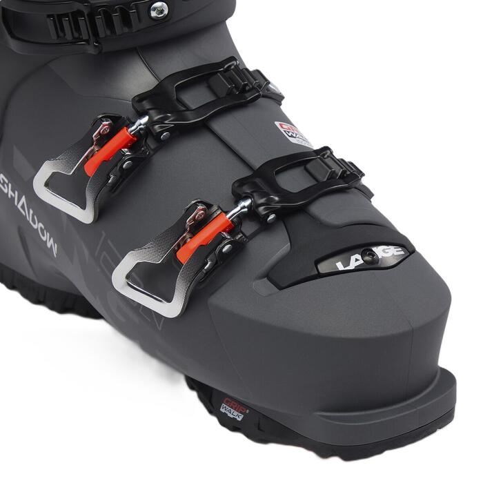 More power and more control with less energy. The Lange Shadow 120 LV ski boots bring a new level of power transfer, vibration absorption and comfort to all-mountain skiing. Assisted Performance System amplifies your input to the boot through the mechanical advantage of Lange's Dual Pivot and Suspension Blade technology. The design boosts input by up to 26%, giving you more power and control with less energy. The boot's clean, consistent flex is combined with increased shock absorption through the shell for enhanced snow feel and contact. Like a full suspension bike, the combination lets you ski longer and more efficiently. Together with a 120-rated flex, this boot gives advanced and expert skiers a strong platform for ripping across the whole mountain. At 97mm wide, the low-volume last complements the thermoformable liner for a comfortable performance fit.