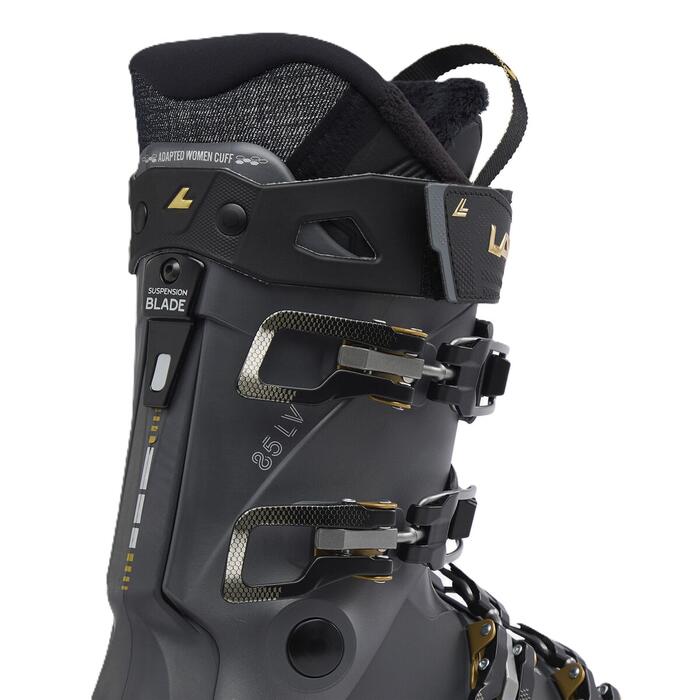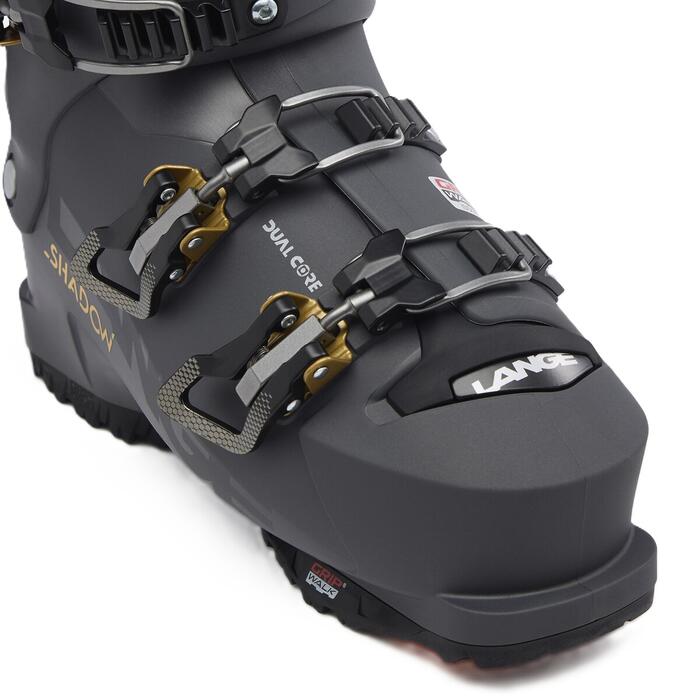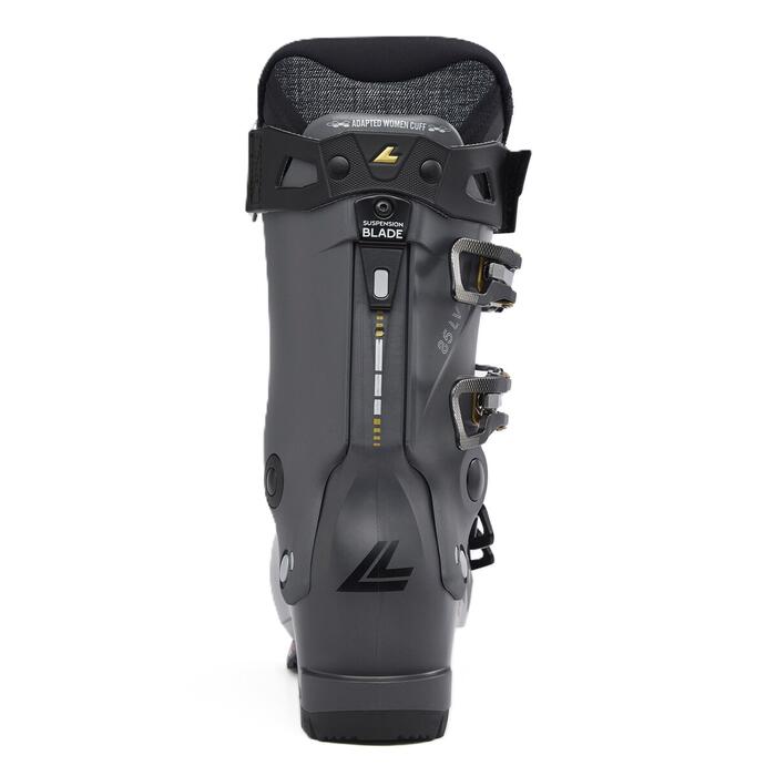 More power and more control with less energy. The women's Lange Shadow 85 LV ski boots bring a new level of power transfer, vibration absorption and comfort to all-mountain skiing. Assisted Performance System amplifies your input to the boot through the mechanical advantage of our Dual Pivot and Suspension Blade technology. The design boosts input by up to 26%, giving you more power and control with less energy. The boot's clean, consistent flex is combined with increased shock absorption through the shell for enhanced snow feel and contact. Like a full suspension bike, the combination lets you ski longer and more efficiently. Together with a moderate 85-rated flex, this boot gives beginner and intermediate skiers a strong platform to keep their ski progression moving forward. The women's-specific shell and 97mm-wide, low-volume last complement the thermoformable liner to offer all-day comfort.