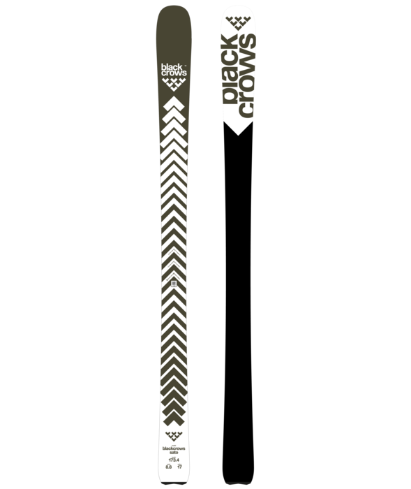 A refined new model designed for the piste and its surroundings; the Sato is a ski bursting with joy. Precise, playful and eye-catching, this small ski loves to carve on immaculate slopes, have fun with the terrain or offer a few sessions between runs. A crystal-clear ski, a joyful ski, a blackcrows ski. Future resort star, the new Sato is a ski full of momentum that will delight those who like to spin along the slopes and roam the domains. With its median flex, it is playful and adapts easily to everyone's style, but it's also edge-holding and incisive for carving at speed. Its reasonable but consistent width makes it an all-terrain ski that can tame wild snow. A freedom-loving ski to ignite your sensual curves.
